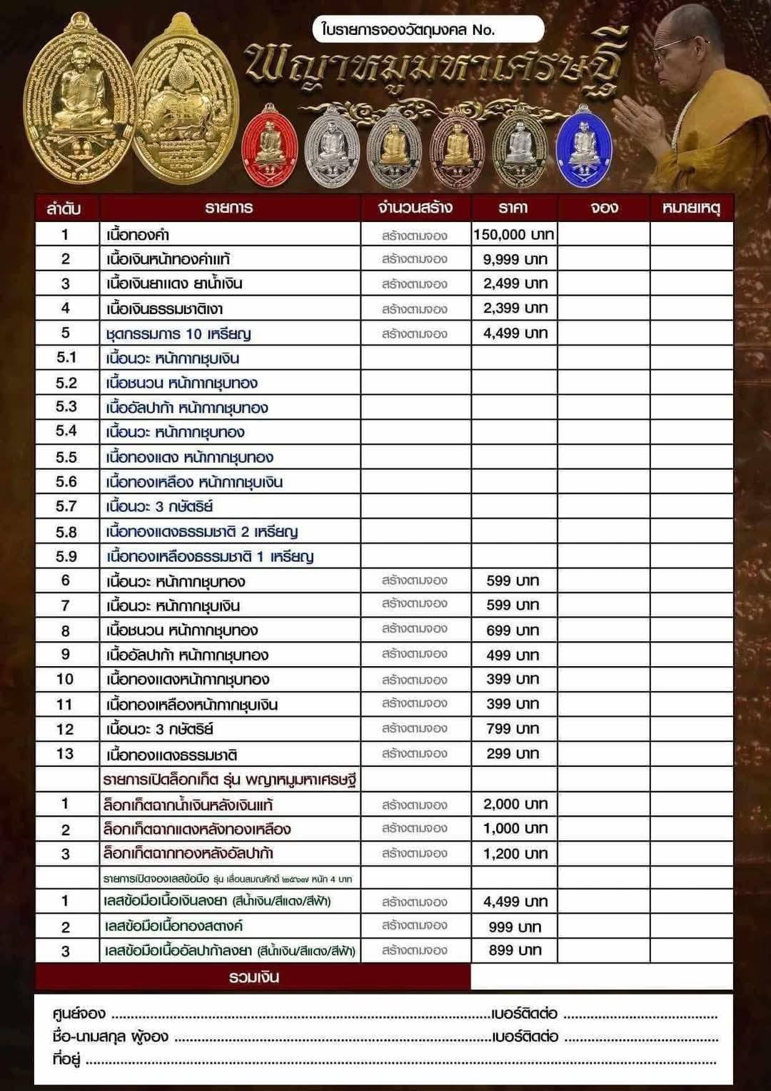 รายการจองเหรียญพญาหมูมหาเศรษฐี ออกวาระวันเกิดหลวงพ่อ ปี 2568