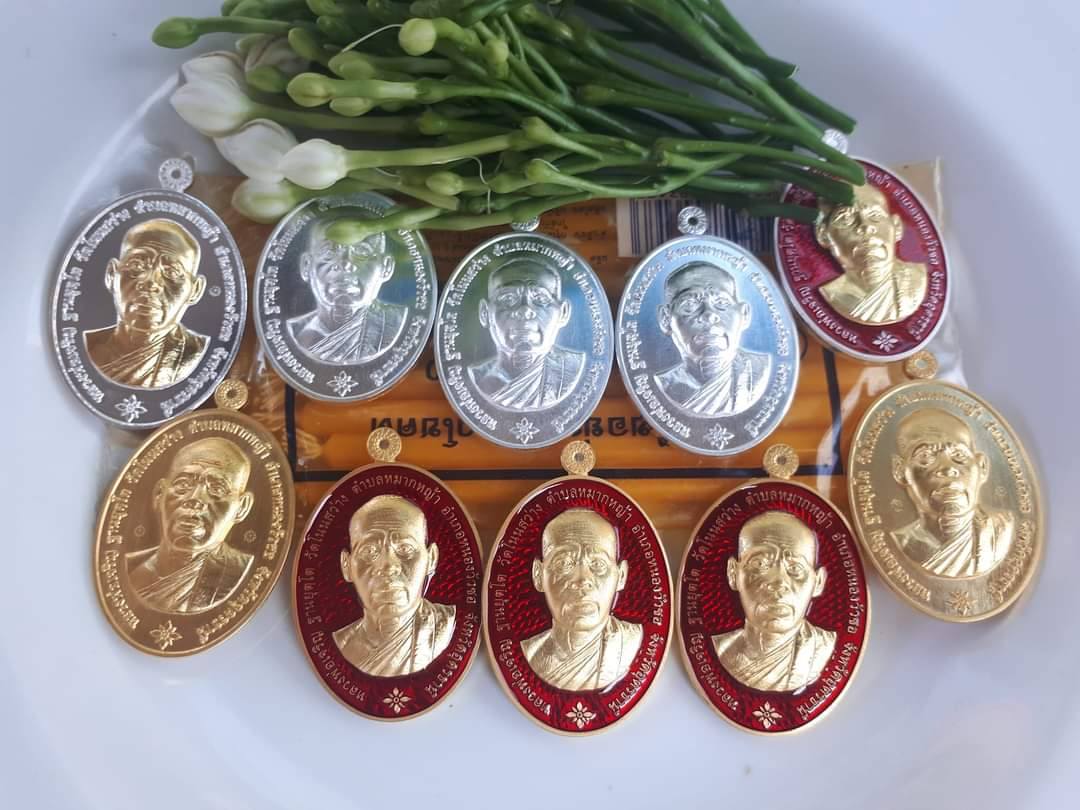 1️⃣ เนื้อเงินพ่นทราย จัดสร้างเท่าอายุหลวงพ่อ 64 เหรียญ