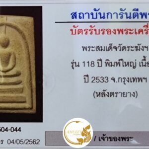 พระสมเด็จวัดระฆัง ปี 2533 รุ่น 118 ปี พิมพ์ใหญ่ หลังตรายาง วัดระฆังโฆสิตารามวรมหาวิหาร กรุงเทพพฯ
