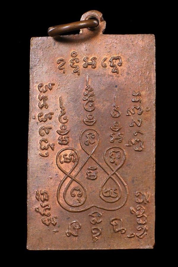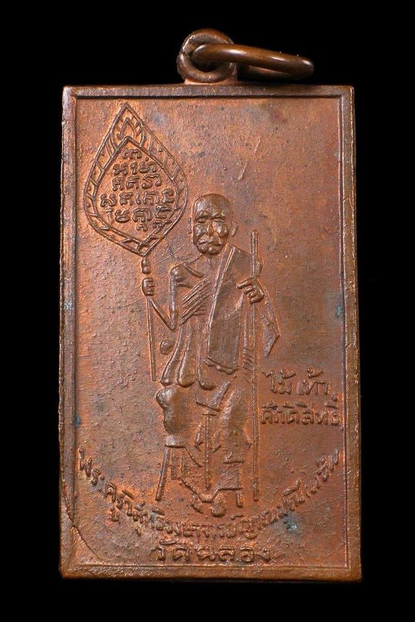 หลวงพ่อแช่ม วัดฉลอง สี่เหลี่ยมพัดยศตัวหนังสือโค้ง ไม้เท้าศักดิ์สิทธิ์ พระครูวิสิทธิวงศาจารย์ (แช่ม) วัดฉลอง(ไชยธาราราม) จังหวัดภูเก็ต เนื้อทองแดงผิวไฟ
